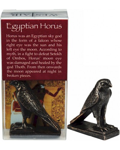 Product Description: This 3.5cm tall Egyptian Horus is made from resin that is painted with an antique bronze finish. It is supplied with a full-colour information card that has an image of Horus from a tomb wall. There is also historical information which explains about the god Horus in ancient Egyptian times. The Horus and folded card are supplied in a clear box.