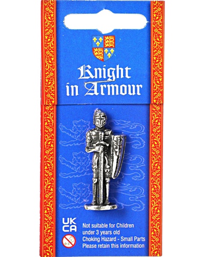 Product Description: This 4cm tall single Knight figure is made from lead-free pewter. There are four different figures available being, a c.1300AD knight, c.1400AD knight and two c.1400-1500AD knights. The figure is mounted on an information card that is full colour with an image of a medieval shield at the top, three lions in the centre and medieval floral design borders on the front and has the knights code of chivalry on the reverse, together with an image of all four of the Knight figures to collect.