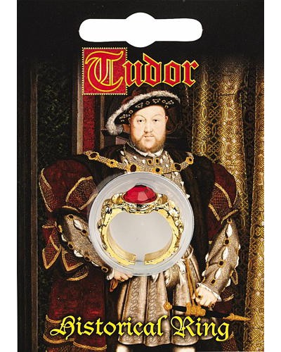 Product Description: This Henry VIII Gem Ring is made from lead-free pewter that is 22ct gold plated and is supplied with either a red, blue or green gem. The ring size can be changed to make it larger or smaller. The ring is held in a clear blister mounted to an information card. The front of the information card has a portrait image of Henry VIII. On the reverse it provides a brief history of jewellery in Tudor times.